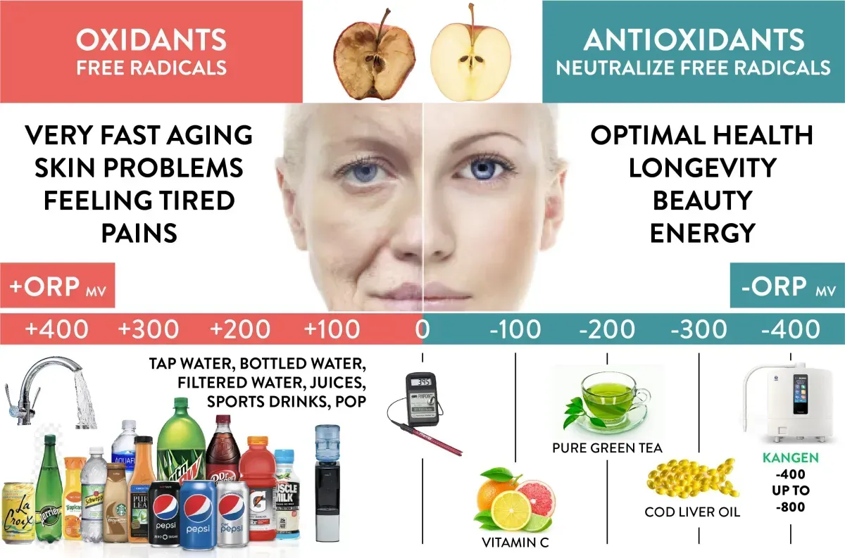 The more negative the oxidation-reduction potential (ORP) value, the more effective a liquid is at reducing oxidative stress. This is because negative ORP indicates that the liquid is rich in electrons and can donate those electrons to neutralize free radicals, which are responsible for oxidative damage in cells, tissues, and organs.